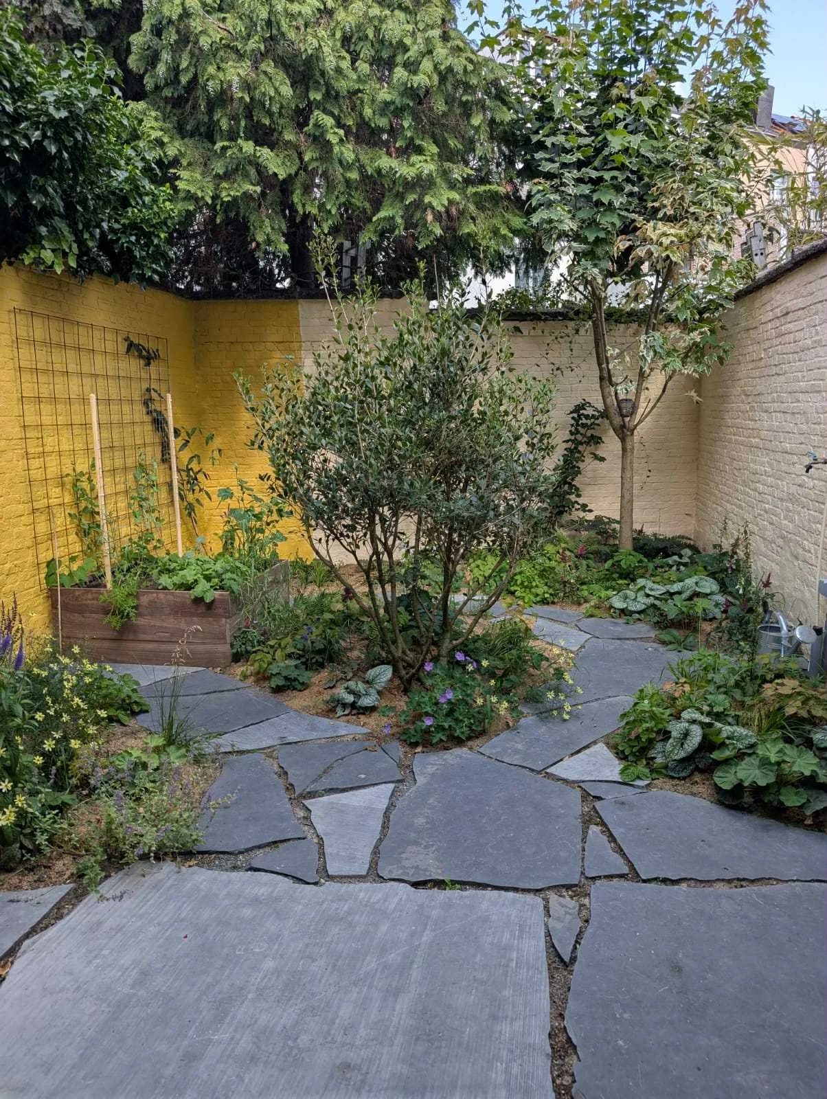 Zelfs de kleinste buitenruimte heeft de potentie om een levendig paradijs te worden. In dit project transformeerden we een ommuurde koer tot een dynamische gezinstuin waar eetbaar groen, biodiversiteit en speelplezier hand in hand gaan.