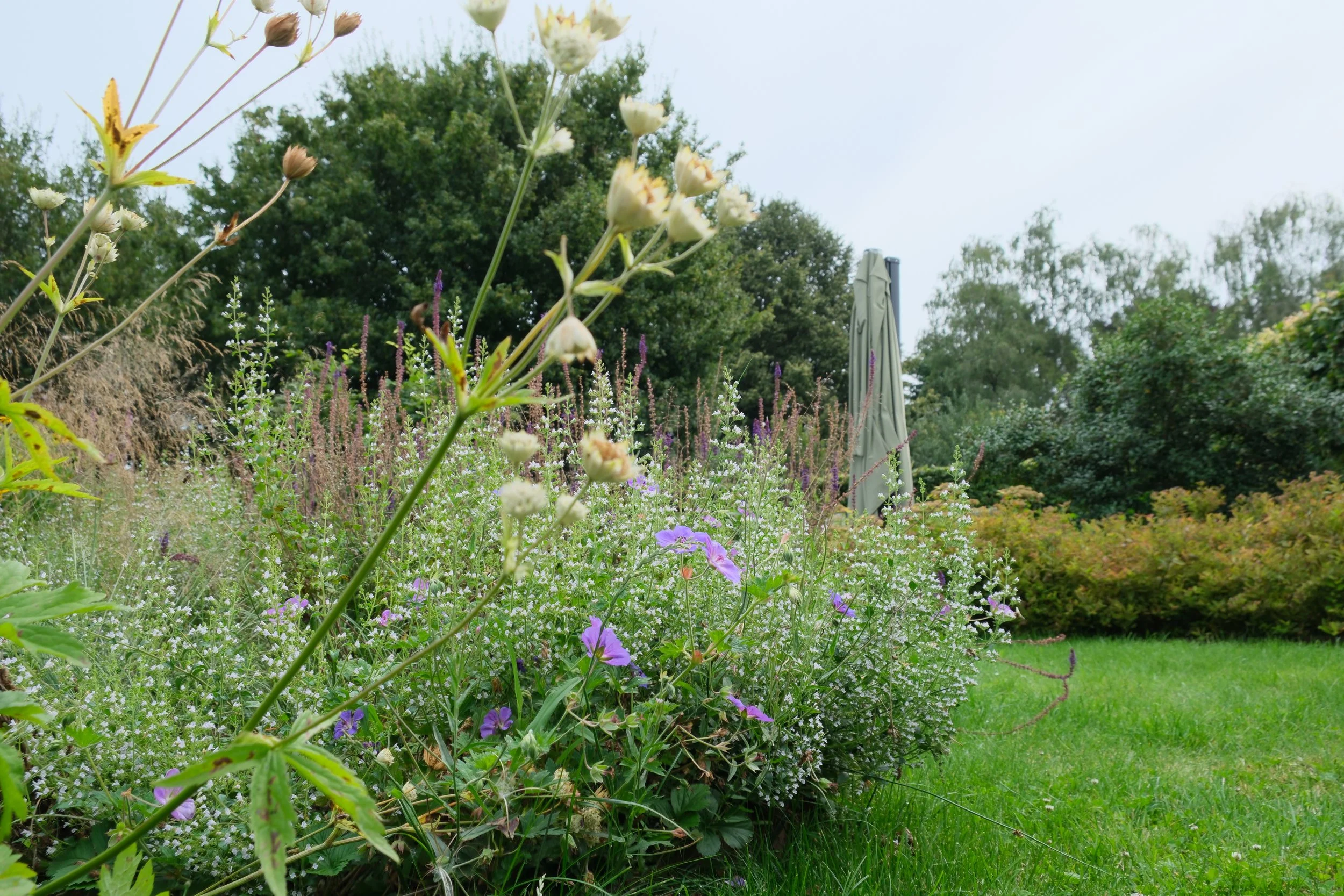 Van tussenuit het bladgroen komen de nectarplanten tevoorschijn. De wintergroene beplanting zorgen voor schuilplaats.